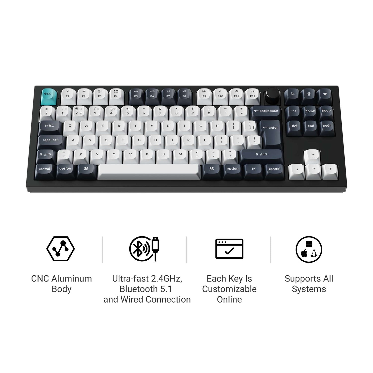 Keychron Q3 Max QMK/VIA Wireless Custom Mechanical Keyboard ISO Layout Collection - Fully Assembled Knob (Carbon Black) / UK-ISO / Gateron Jupiter Red is backordered and will ship as soon as it is back in stock.