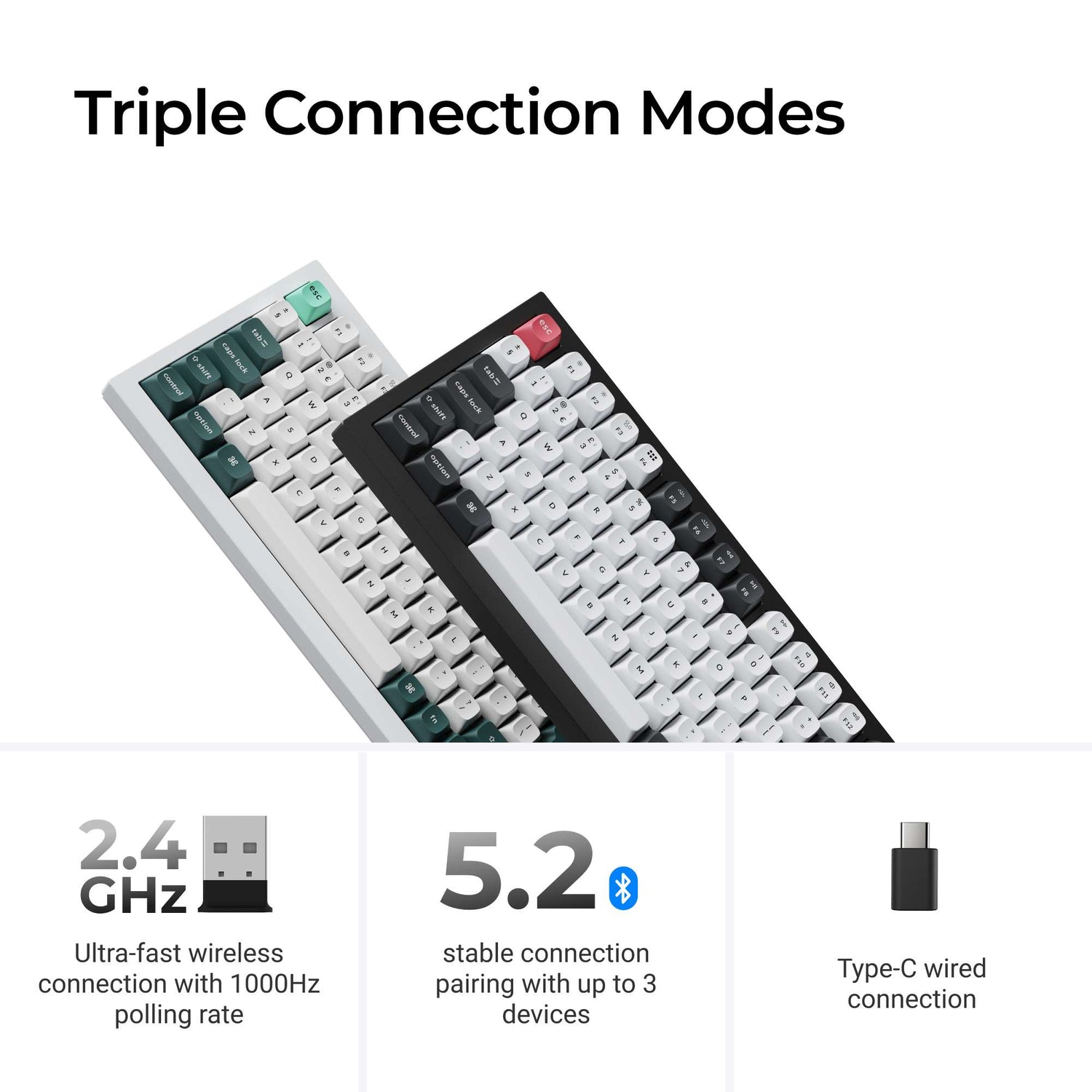 In addition to the Hall Effect magnetic switches, the Q1 HE introduces a 2.4G connection mode with an impressive 1000Hz polling rate, further ensuring a lightning-fast gaming experience. But that's not all; it also boasts premium features such as Bluetooth connectivity, a double-gasket design, an all-aluminum body, PBT keycaps, and more.